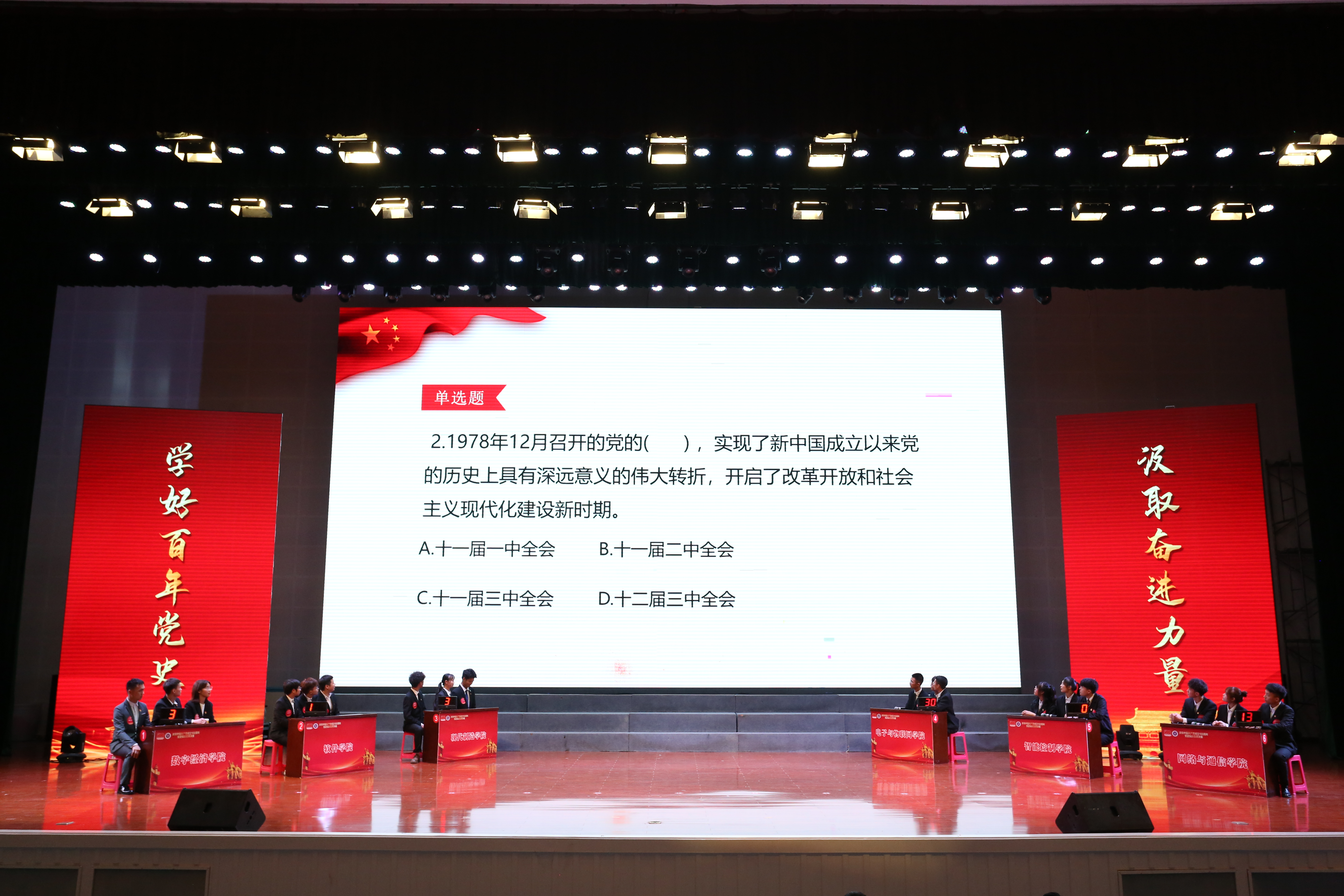 为进一步贯彻落实习近平总书记在党史学习教育动员大会上的重要讲话精神,切实促进广大师生学好百年党史、汲取奋进力量,激励师生学史明理、学史增信、学史崇德、学史力行,6月17日,由校团委主办的 “学党史 强信念 跟党走”庆祝中国共产党成立100周年党史知识竞赛决赛在学术交流中心演艺厅举行。党委书记周勇,院长敬代和,副院长刘凯,纪委书记李莉勤,党委委员、组织部部长母中旭以及学生工作部、各二级学院党总支负责人,全体团委委员和师生代表一千余人参加了活动。