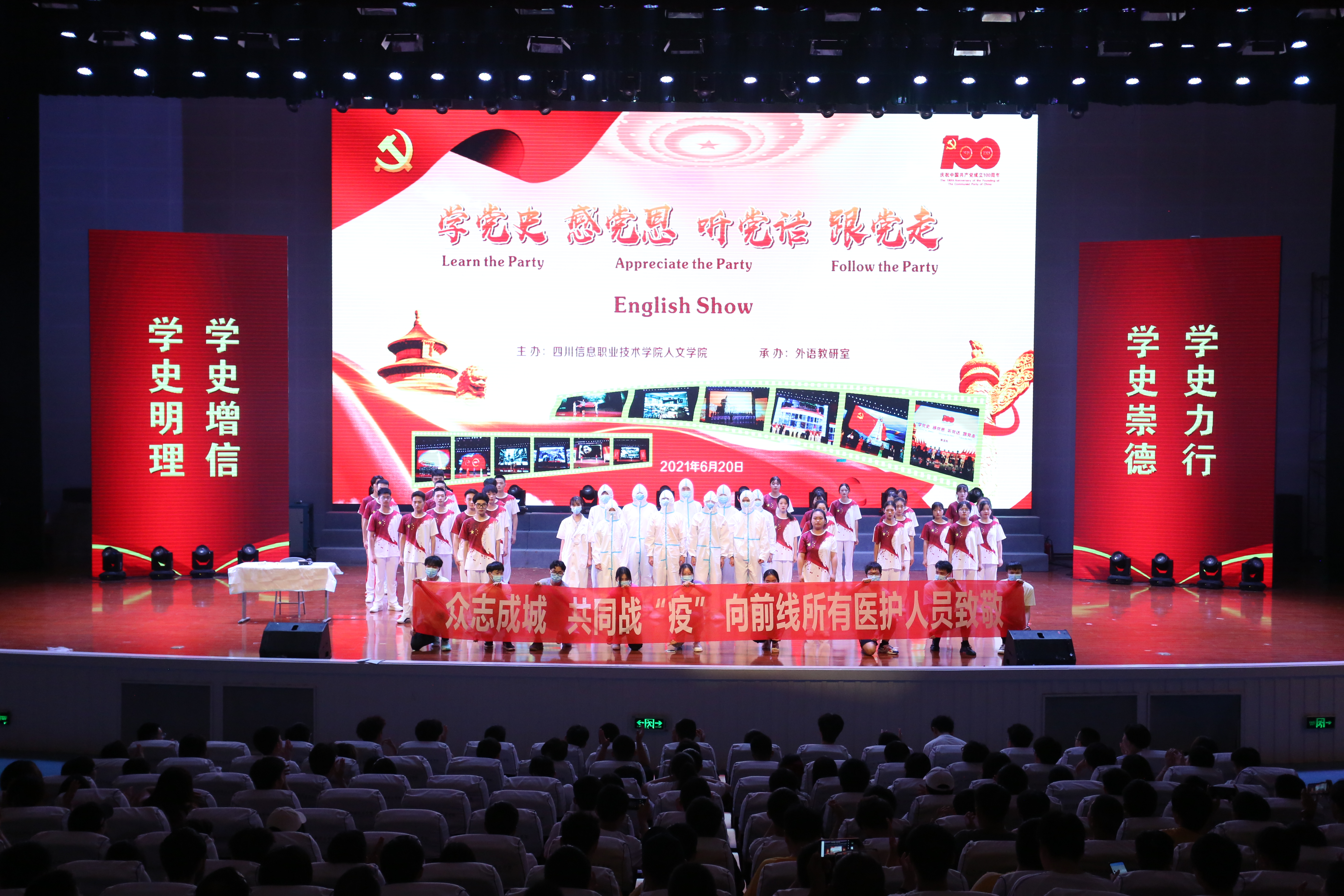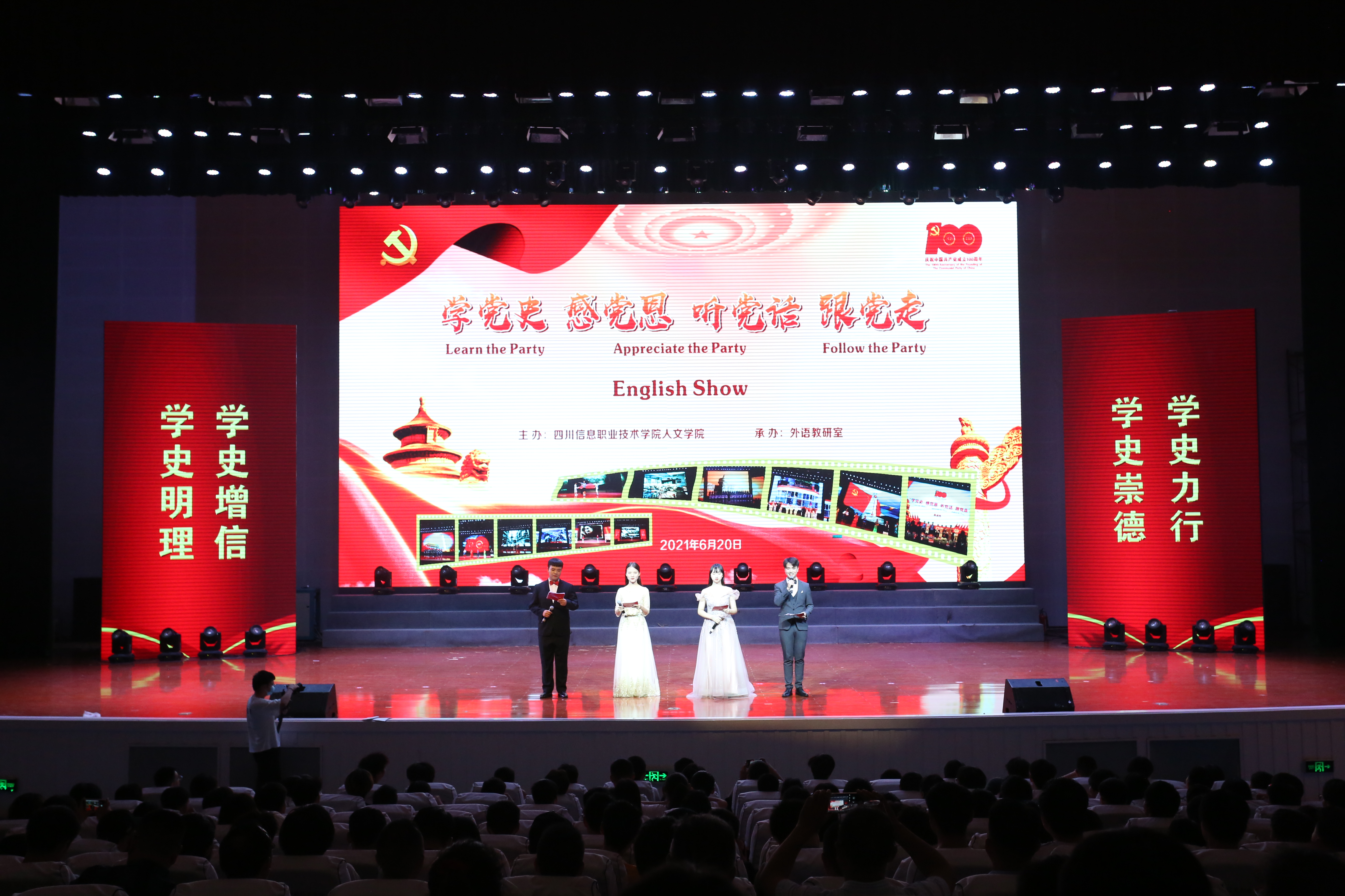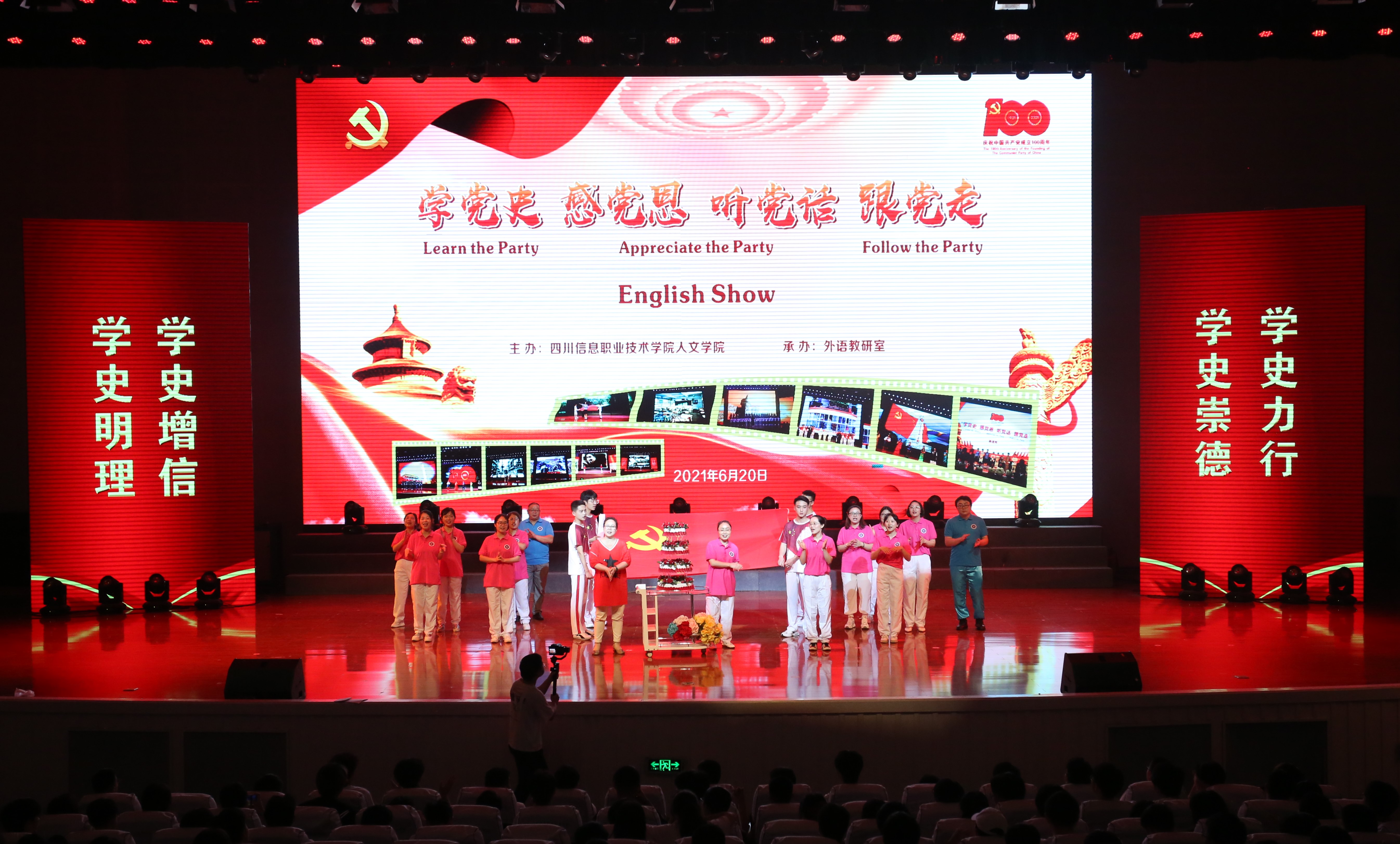 为庆祝中国共产党成立100周年,进一步推进大学英语课程与课程思政的深度融合,6月20日晚,人文学院外语教研室在雪峰校区学术交流中心演艺厅举办“学党史感党恩听党话跟党走”英语秀文艺汇演。党委书记周勇,副院长韩鹏,党委委员、宣传统战部部长吕强,党委委员、组织部部长母中旭及各职能部门、各二级学院负责人和千余名师生代表观看了演出。